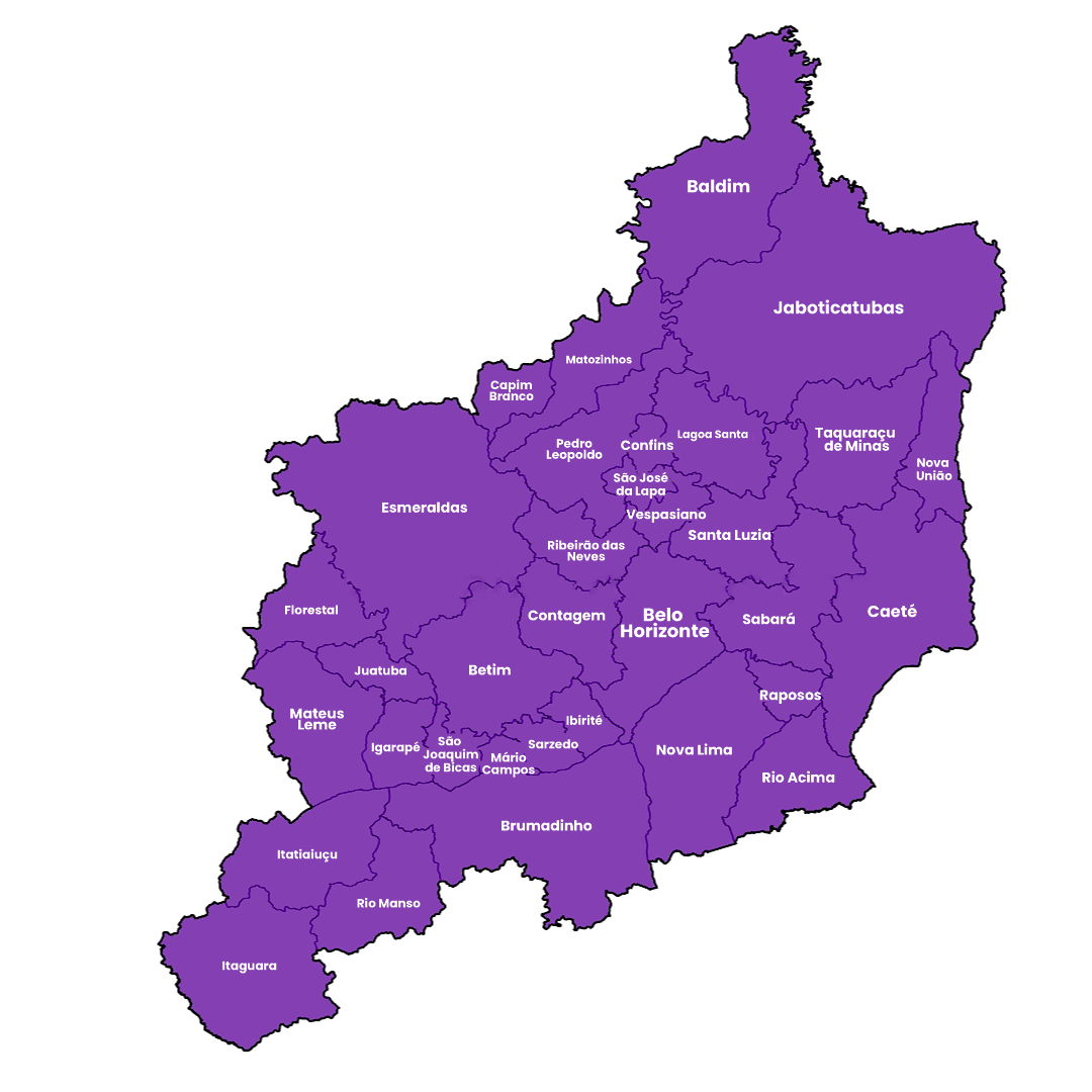 Atendemos em Belo Horizonte, Contagem, Ribeirão das Neves, Lagoa Santa, Pampulha, Venda Nova, Vespasiano, Confins e Sete Lagoas.